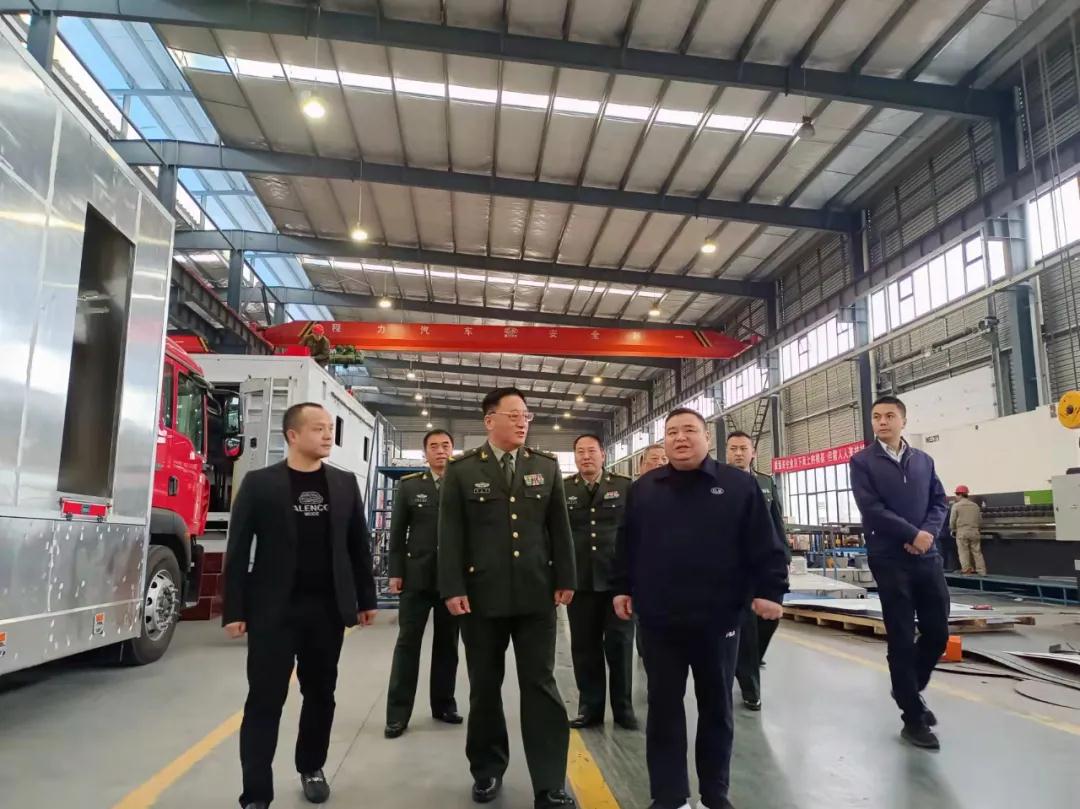 視察組參觀的第二站,來到了程力汽車集團應急保障車生產車間調研,對程力野外露營車、淋浴車、餐車、被服洗滌車、電源搶險車、排澇車等軍民兩用裝備的生產工藝與產能,表示出濃厚的興趣;當首長們了解到中國神舟十三返航英雄們,所用的地面后勤保障醫監醫保醫療專用車,也是程力公司所生產的情況后,大加贊許。