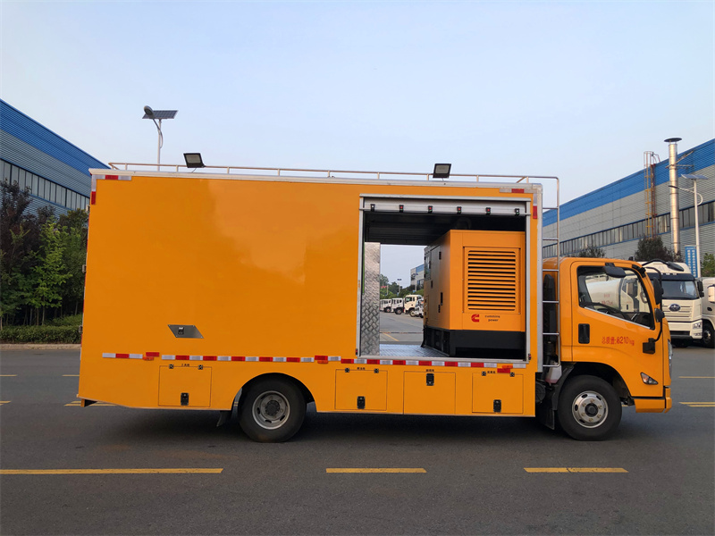 上裝配置:定制復(fù)合箱體,帶降噪功能,不銹鋼內(nèi)飾,75WK柴油發(fā)動機,雙風(fēng)機組合,定制控制系統(tǒng),160米繞線機,紫外光大小燈鏈各一組,箱體帶冷暖空調(diào),氣動遮陽板,不銹鋼儲物柜,兩側(cè)帶工具箱,更多配置